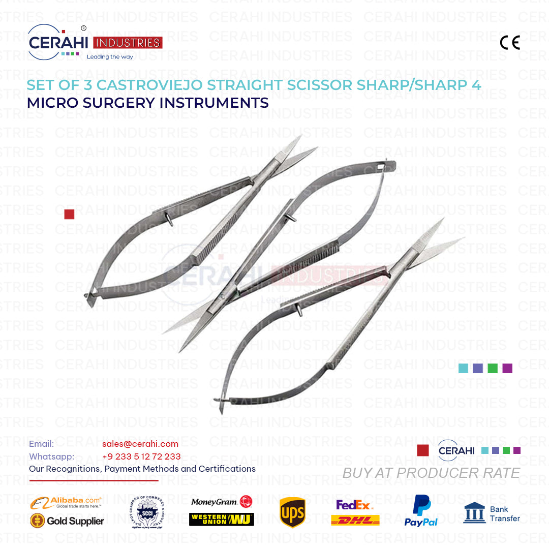 Purchase High Quality Castroviejo Straight Scissors Set of 3 Sharp 4 Inch Micro Instruments
