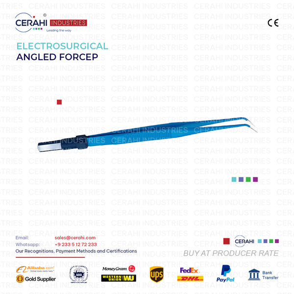 Description: Electrosurgical Instruments EU Connection Product Name: Angled Forcep Product Code: 6-105-1 / 6-105-2 / 6-105-3 / 6-105-4 / 6-105-5 Product Size: 15 cm / 18 cm / 20 cm / 22 cm / 24 cm Product...